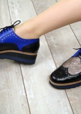 Classic derby have a low steady wide heel. But girls often want to seem a little taller, and legs visually lengthen. Therefore, in female models, designers do not get tired of experimenting with these shoes and offer in their new collections models with thickened soles, low wedges, and increased heels up to 5 centimeters.