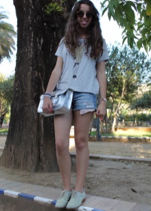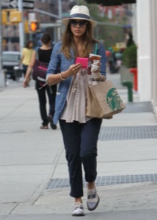 - Low shoes with lacing of light shades fit perfectly into the summer look. You can wear them not only with trousers, but also with short skirts or a light dress. It is better to complement the look with a thicker jacket, jacket or denim jacket.
