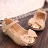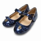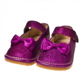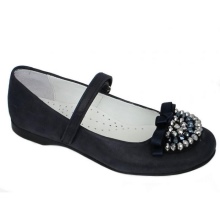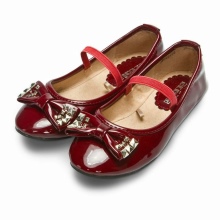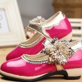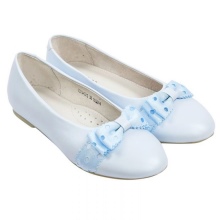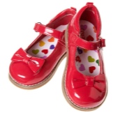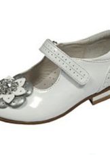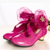 The festive version of shoes for girls from patent leather will become the favorite shoes of the young fashionista. A spectacular two-layer textile bow with a metal finish gives elegance, rich color and luster of patent leather attracts attention. A comfortable small and wide heel up to 1 cm and a stiff heel will give a comfortable fit on the leg, an additional fixation of the leg is a jumper in the form of a buckle with a clasp. These shoes are suitable for girls from 5 to 8 years.