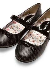 The school uniform also involves shoes of a certain style. Basically, these are classic models. For young fashionistas, Mary Jane shoes are offered with a comfortable shoe and strap. Such shoes can be on a flat sole, on a small heel, on a low platform.