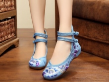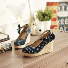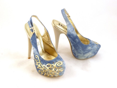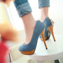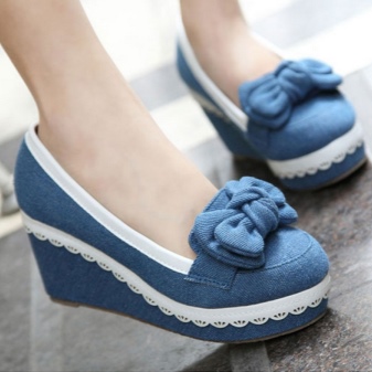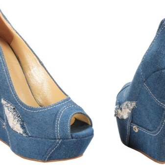 - Wedge-denim shoes are primarily valued for their convenience. They look no less chic than shoes with heels, but their legs aren’t so tired, so they are often chosen as a daily option. Designers are actively experimenting with wedges, making it carved, curly, wicker, covered with denim or other material. Models created entirely from denim look more concise. Bright and expressive are jeans shoes with inserts of colored material.