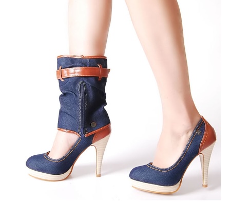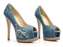 - Denim models with heels look elegant, make the image unusual and interesting. Various heel variations are possible: thin, thick, high, low - in any case, shoes are popular.