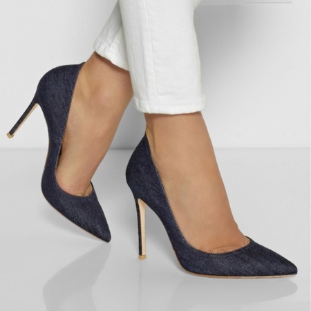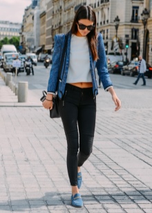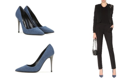 - A business image will look interesting with such shoes. Allowed to combine denim shoes with skirts and trousers in classic colors. You can add a small element to the image that will resonate with the shade of the shoe.