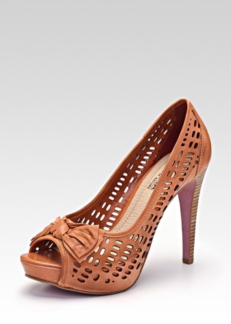 The most elegant line with perforation. Brazilian stylists were able to make lace from leather: couples look so airy and beautiful. Perforated high-heeled shoes have an open toe and a figured top line of the boat. The couple’s decor was an imitation clasp in the form of a bow made of a thin leather cord. Such shoes will appeal to fans of lightness and romance.
