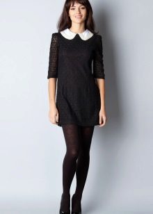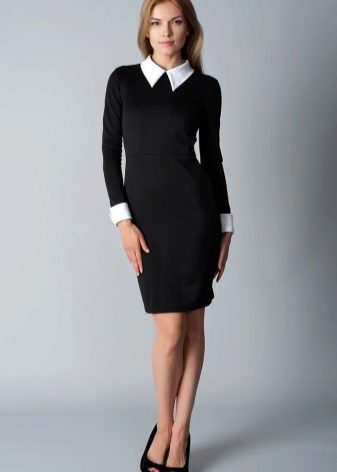 Business style is the most rigorous and practical. A black dress of strict cut with a length not higher than the middle of the thigh and with a sleeve, at least short, would be appropriate here. And to him - classic boats with medium stable heels. You should also remember about tights, without which rarely what dress code does. The most natural skin color is best, black is also possible. And the fashion for feminine collars and cuffs makes it easy to refresh the image.