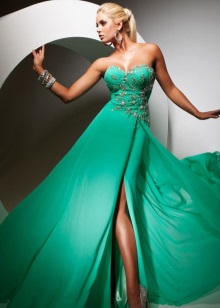 By the way, light shades of green (mint, lime color, jasmine green) are recommended for blondes. Owners of dark hair are recommended saturated shades, among which emerald stands out favorably. Red-haired fashionistas can choose dresses with a greenish-brown tint.