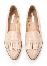 Loafers are closed shoes without fasteners with a clear “tongue” on a thick sole with a low and wide (flat) heel. The decor can be metal inserts, strips on the tongue, fringe trim.