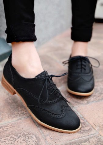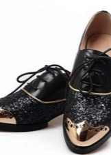 Another variety of classic women's shoes are oxfords and broggs. Oxfords came into women's fashion at the beginning of the 20th century from men's fashion.These are closed shoes similar to men, with a narrow nose, low and flat heels, stiff soles and lacing.