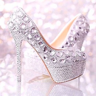 Festive versions of classic shoes for girls are presented by models of lace, satin, suede and patent leather. At the prom, you can pick up shoes with low heels, low heels, decorated with beads, sequins, embroidered with lace, stones, embroidery.