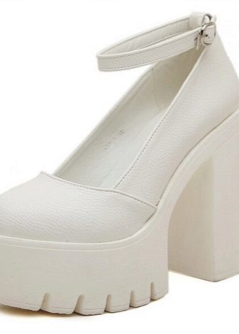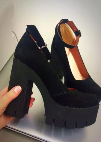 Shoes on the platform can have a textured sole decorated with decor, drawings, or a clearly mechanized shade - tractor soles, army soles, etc.