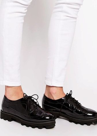 Broggs are similar to oxfords, but differ in the perforation of the surface of the shoes according to the edging.on the front of the toe and on the sides of the shoes. Oxfords and broggs are made of leather, patent leather, suede, as well as modern analogues of genuine leather and their imitations.