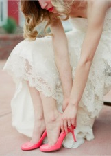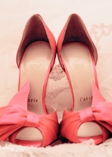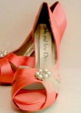 - Coral shoes are also a great choice of shoes for the bride’s wedding dress. The coral color goes well not only with a white dress, but also with lilac and light blue.