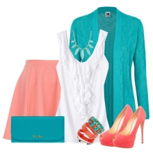 - The outfit is yellow or light green in combination with coral sandals or pumps, this is a great way for summer time.