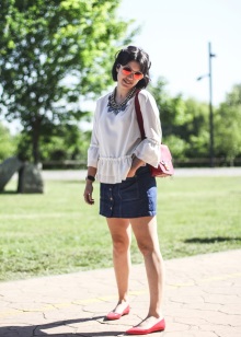 - Coral-colored shoes with flat soles require additional accessories. It can be a small hat with narrow fields of a light shade, a clutch of black or white, a suitcase bag of a dark color, a brooch in the form of a flower or a large bow, a light scarf of turquoise or green color. Also, a manicure of a suitable color or a beautiful lipstick can become a necessary detail.