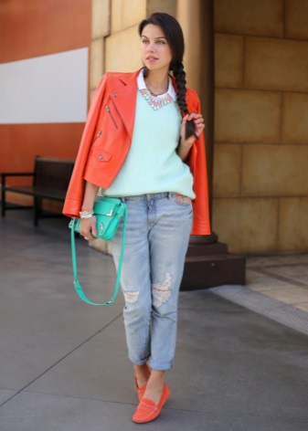 Coral shoes blend perfectly with clothing colors such as gray and white, as well as pastel shades.Shoes with outfits of black, blue, blue, green colors look good, but with red and pink outfits, it is better not to wear coral shoes - the colors will “pull” attention to themselves and the whole image will not work out.