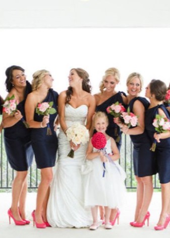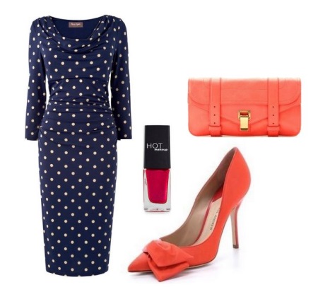 - An excellent option are plain dresses of sand, gray, black, beige. A little black dress helps out in this situation - the coral color of the shoe gives romance and lightness even to the strict cut of the dress.