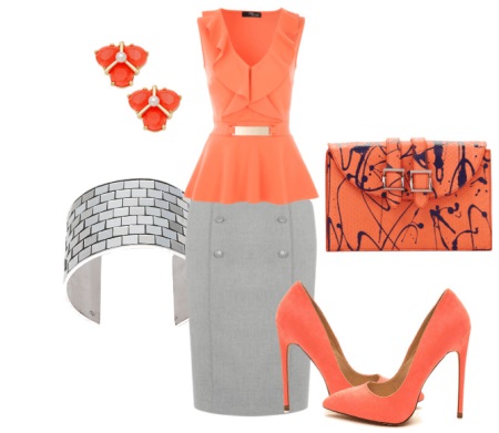 - To create a business image, a peach or gray suit is suitable for coral shoes.