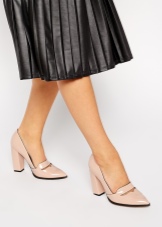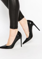 Leather shoes combine with any thing: formal suits, skirts, jeans, leggings, skinny dresses, dresses, sundresses and formal dresses. At the same time, different heel heights will give their individuality. A high heel can take the form of a wedge (truncated), a cone, a shot glass or a column, a hairpin or a stacked one, assembled from separate parts.