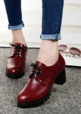 As an option, you can choose oxford shoes in a men's style on a small square heel (often this style has autumn models). They are no less comfortable than the previous model. Such models are popular among girls who do not want to slow down the rhythm of life due to high heels, but want to look fashionable. Oxfords are quite suitable for the role of office shoes.