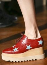 Wear wedge leather shoes with shorts, jeans and tops. As for patent leather shoes, combine them only with matte texture clothing, preferably one tone with shoes. Suppose a contrasting outfit - the main thing is that it is not shiny.