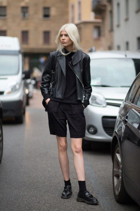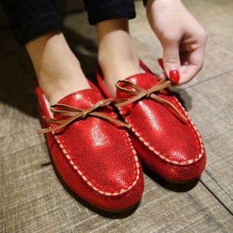 Different models of leather shoes require different additions. So, the boats will create a romantic image in a duet with a magnificent bell skirt. If you wear a pencil skirt to them, then your silhouette will become elegant and irresistible. This model also looks organically with skinny jeans or classic pants.