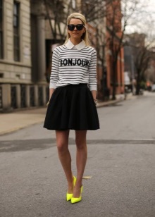 Since the design of shoes with such an original sole in itself attracts a lot of attention, you should not supplement the image with other equally bright details so as not to overload it.