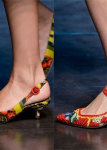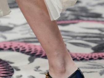 It is best to wear them with luxurious dresses and evening dresses. The back of these shoes is a favorite place for fashion designers to express themselves. Various decorative elements adorn the heel and heel of the delenok, creating new original models.