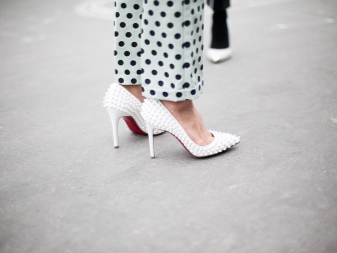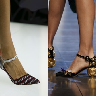 Modern designers bring some changes to the original shape of the boats, and today shoes with low heels and pointed toes with a metal tip have become a fashionable trend. Cropped trousers or long dresses combine wonderfully with such shoes, and an addition in the form of accessories with metal inserts will complete the fashionable look.