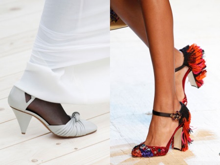- Shoes d’Orsay. These beautiful shoes, named after the count who knew a lot about fashion from France, are also very popular today. There are options for shoes with a flat sole or wedge heels, but with a heel such a model looks especially elegant and feminine. The model resembles closed-toe pumps, but the side cutouts are quite deep and open the feet as much as possible. D'Orsay shoes will be a great end to a festive look with a cocktail dress, as well as suitable for feminine summer looks.