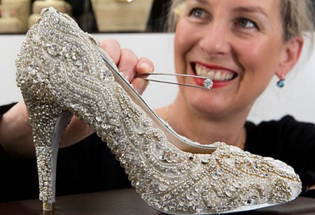 Another designer, Catherine Wilson from New Zealand, worked hard and created a real masterpiece - diamond shoes. The model was based on classic pumps with gold stilettos. As a decoration, special-cut gemstones were used, of which interwoven patterns were laid around the entire perimeter of the shoes. A lot of work and a considerable amount of diamonds invested in creating the famous pair of shoes, valued at half a million dollars.
