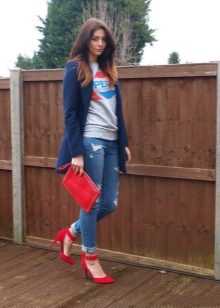 Any modest image can be transformed with the help of bright shoes, for example, red shoes of boats. In such shoes there is a classic, audacity, sexuality and challenge.