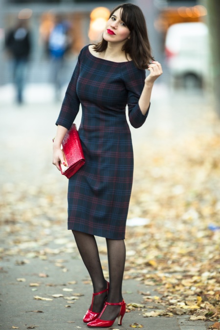With what to wear red pumps, we have already figured out, but what about tights? Now many can think of black stockings and red shoes. This combination is sexy and exciting, but not always appropriate. Moreover, for such a combination you need a perfect look, preferably with winter notes. Under black tights and red shoes, you can wear tight knitted dresses, woolen, not stretching models.
