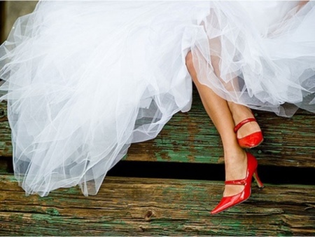 Red shoes in the image of a bride