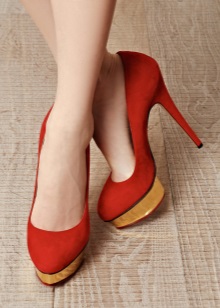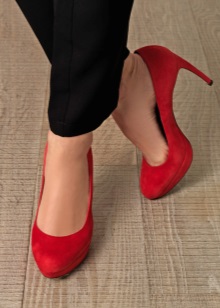 To feel like a fatal and self-confident woman will help not only correctly selected clothes, but also suitable shoes. Suede shoes of sexy red color perfectly emphasize the extravagance and elegance of the image.