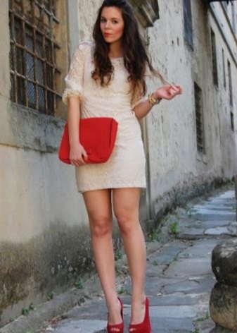Thin or wide red straps on dresses and elongated shirts will unobtrusively draw attention to suede shoes of a similar color.