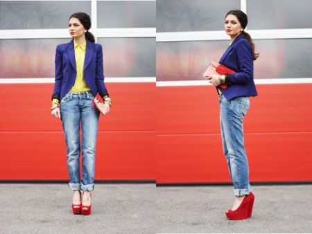 Catchy handbags and clutches of red, brown or classic black underline the richness of the chosen style, and the presence of golden straps, locks or inserts will add along with high cost and originality.