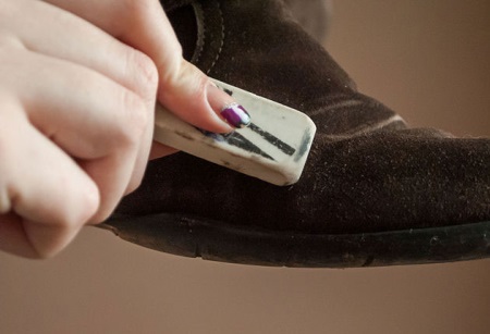 Fresh dusty traces are easily removed with a brush from the surface of suede shoes. If the suede begins to shine, then it is worth cleaning with a special eraser. Before proceeding with these procedures, it is worth treating the shoes with steam.