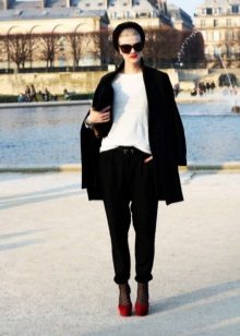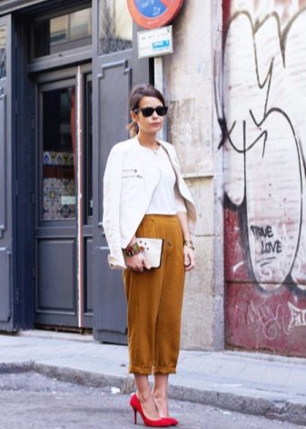 Pants can be chosen different, both of a classic cut and narrowed pipes - the shoes will look luxurious anyway. Regarding the colors of the trousers, the same shades that were described for dresses will do.