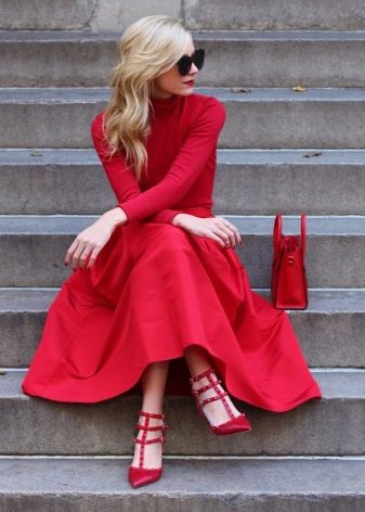Red shoes are perfect for any dresses of dark or light, delicate shades. The length of the dress can be from mini to midi, since maxi dresses often cover shoes, there is no sense and the need to choose this particular model.