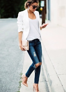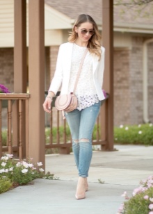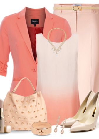 Fashionable bow of the season, suitable for the club, are blue skinny with a mint tunic and golden additions. The ensemble with a pink color can be made up of a pink skirt of a straight cut, a white and pink top with an ombre effect, a coat of diluted coral color and cream boats. As a style accessory can be a pearl string jewelry or a light clutch embroidered with pearls.