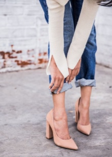 When purchasing a shoe style, it is worth deciding on the direction of the style. Cream pumps on an average heel will become the universal choice. They will fit into the office bow and decorate a walk or a festive event. An evening outfit in such pairs is not inferior in elegance to high analogues on a hairpin, and a small height of the heel will allow spending maximum time without leg fatigue.