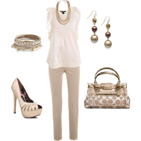 The cream shade is somewhat capricious and has its own preferences in color combination with wardrobe items. Most of all he loves the colors of a gamut close to him: beige, yellow, brown tones.