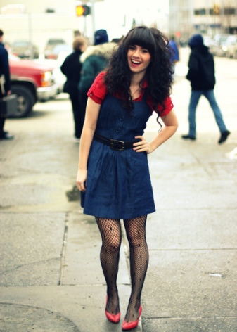 - Choosing tights, it is better to choose skin tones. Too dense black tights, bright colors and patterns can not be combined with red shoes.