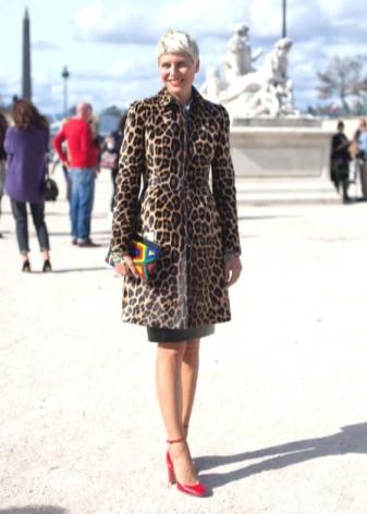 If with red shoes the girl decided to wear clothes decorated with a print, then his elements should overlap with shoes and harmonize the image.