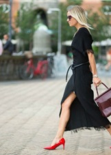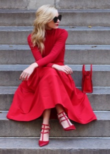 This model will be especially in harmony with dresses of midi and maxi length, made of non-glare matte materials. Red patent leather shoes should serve as the main decoration of the bow, which is why it is worth paying attention to the simpler cut dress and its color palette.