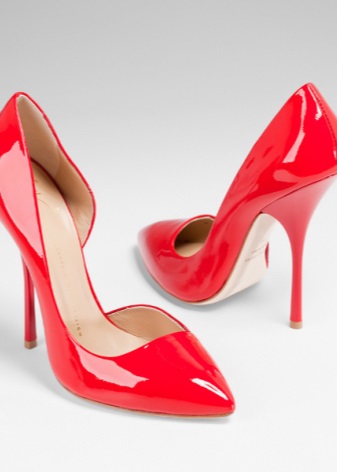 The most popular models of red patent leather shoes among girls and women are stilettos with a pointed toe. Many stylists classify this product as a classic of women's fashion. Such shoes look not only stylish and elegant, but also feminine.