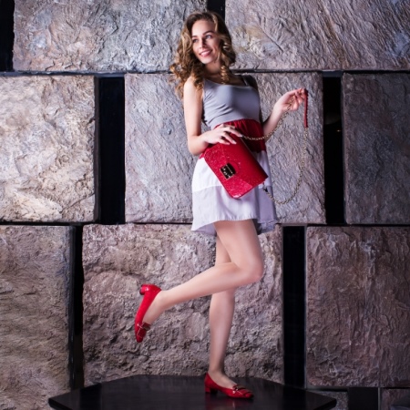 Do not wear it with a shiny dress, elaborate accessories in the form of giant and metallized jewelry and sequined embroidered handbags. Complex cuts in clothing should be avoided. A thin lacquer strap or a modest clutch bag will be appropriate. It is not recommended to wear glossy tights for glossy shoes, especially the pattern. It is better to choose bodily or black translucent stockings.