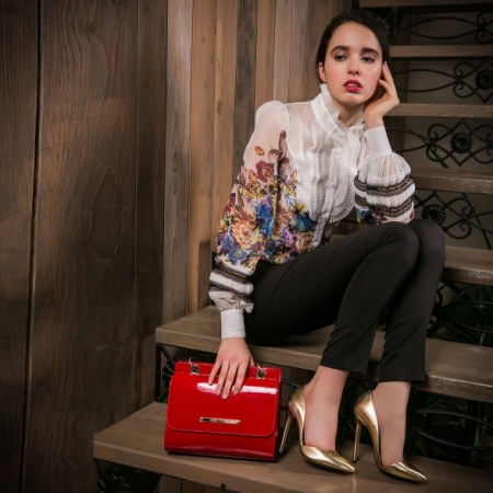 It is recommended to wear patent leather shoes with fabrics of matte, crepe texture, lace or chiffon. Satin, shiny and overly decorated dresses are not suitable for glossy shoes; only small inserts made of these materials are allowed.
