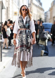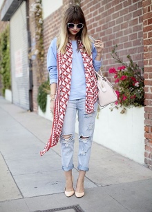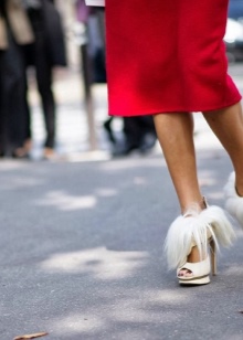 The main thing is that the bow should look harmonious as a whole.If you opt for shoes with flat soles, it is best to complement the look with details of the same color. A jewelry, scarf, stole or purse of the same color will help solve this problem.