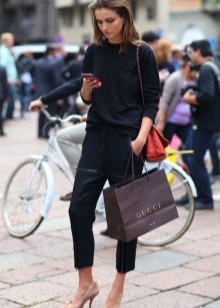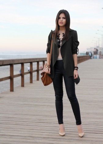 - A black jacket, a neutral shirt, bright accessories (jewelry, a bag) and milk shoes are another recipe for creating a fashionable image.